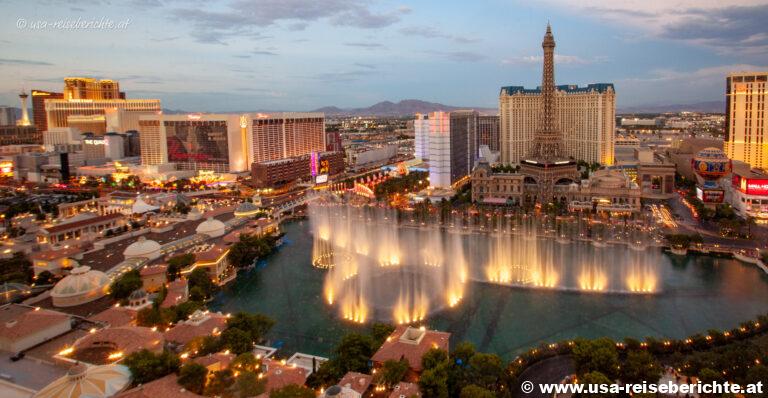 Eine der wohl beeindruckendsten Hotel-Attraktionen entlang des Las Vegas Boulevard sind wohl die Bellagio Fountains, die nächtlich ihre volle Pracht zeigen.